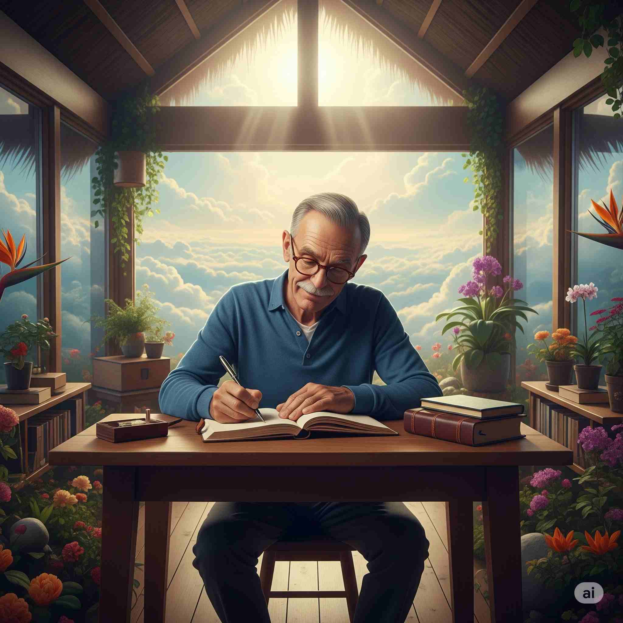 【お題】天国にあるお洒落な小屋の中で執筆活動をされる谷口雅春師似のご老人