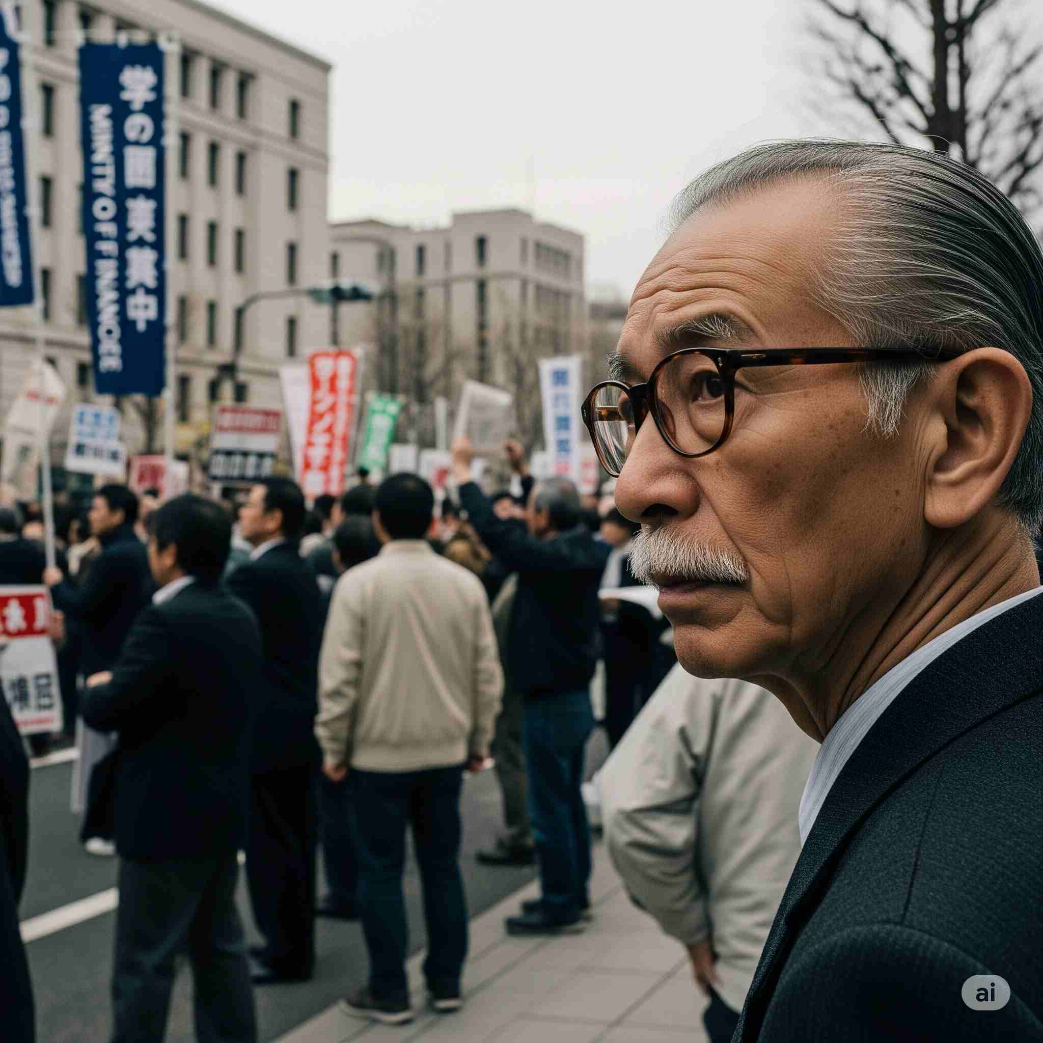 【お題】霊体として財務省解体デモを横から見守る谷口雅春師似のご老人